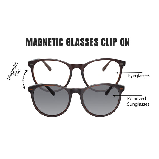 Brown Round Magnetic Glasses Clip On For Men & Women