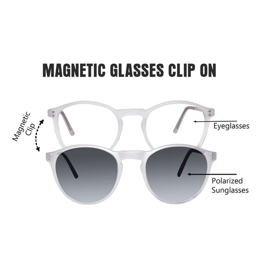 Clip on transparent round eyeglasses for men & Women
