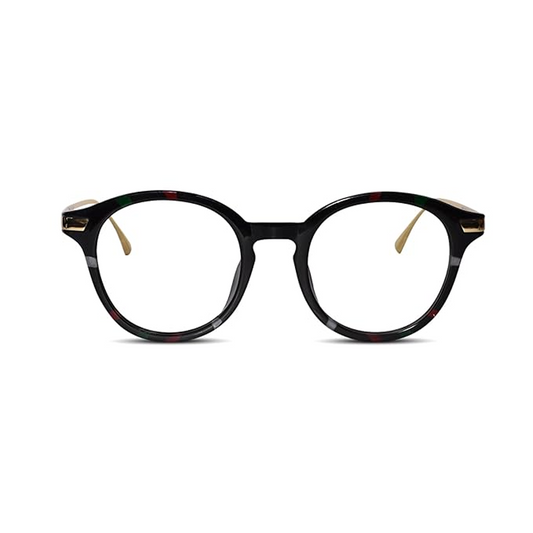 Shiny Dual Tone Black Printed Round Eyeglasses