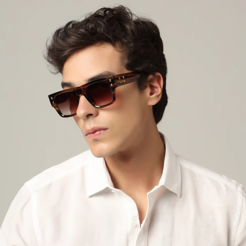 Stylish Bold Black with Green Tint Rectangular Sunglasses